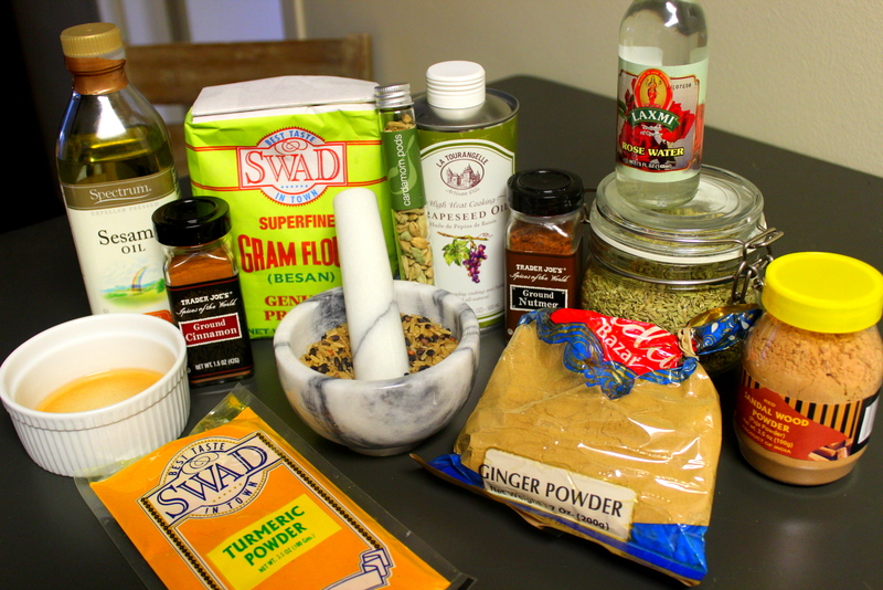 Mix all ingredients into a thick paste and massage over the body to exfoliate and balance the skin.  Shower or rinse the mixture off.  Dry well.  You know that you have this one right when it smells like an Indian curry!